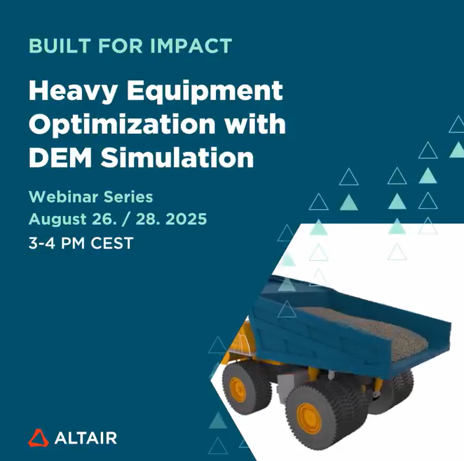 In the sessions, we explore how bulk materials—such as rocks, soil, ores, and aggregates—interact with machinery, and why understanding their behavior under varying conditions is critical to performance. Altair EDEM enables engineers to simulate and analyse these interactions virtually, providing valuable insights that enhance reliability, capacity, and efficiency.